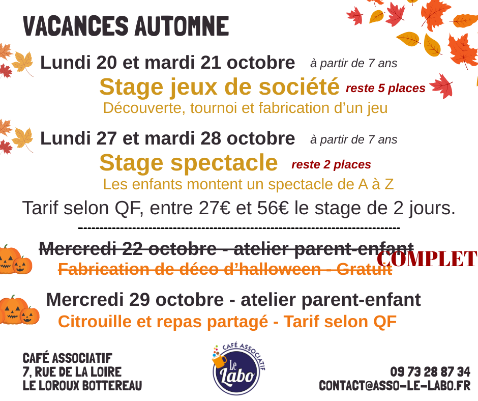 🔸Stage spectacle les 27 & 28 octobre de 9h à 17h.